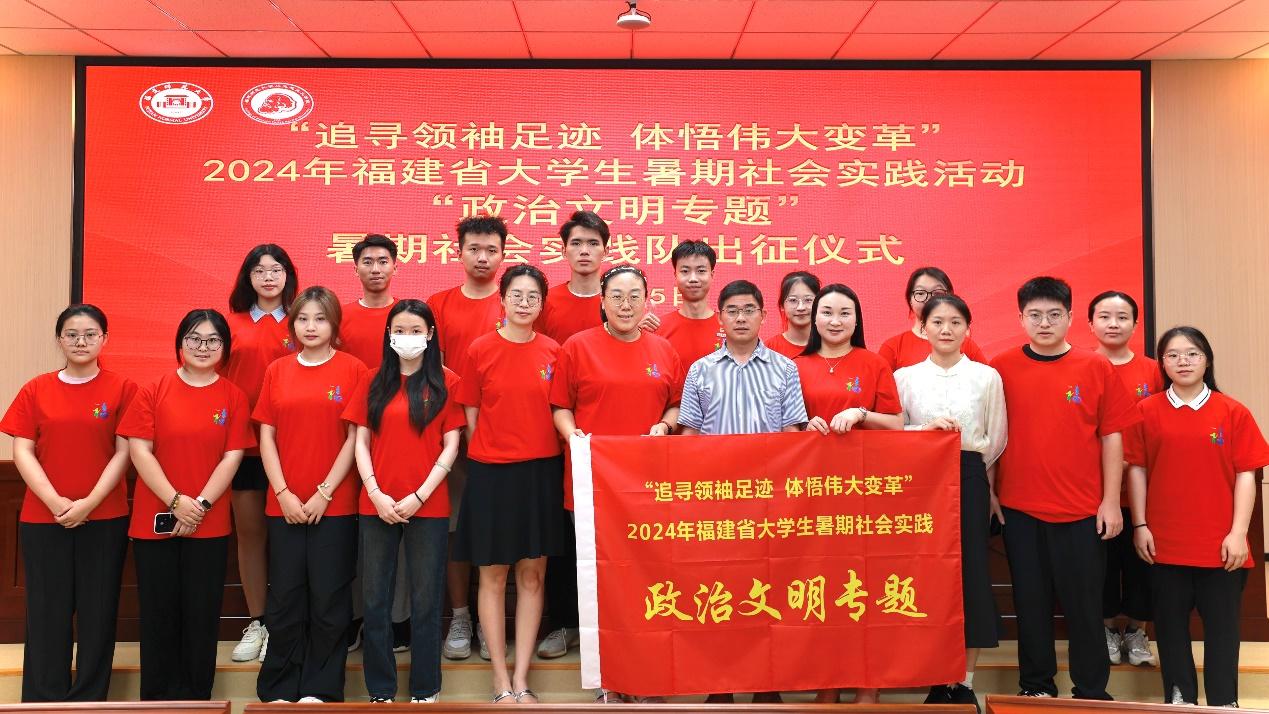 7月4日,由马克思主义学院与荣耀体育在线注册_荣耀体育(中国)协和学院、闽江学院牵头开展的2024年福建省大学生暑期社会实践活动“政治文明”专题示范实践队出征仪式在学院学术报告厅举行。学院党委书记阮传瞰、院长傅慧芳、知名专家学者、师生代表参加活动。活动由学院党委副书记杨君火主持。