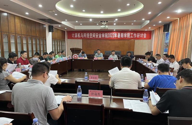 近日,计算机与网络空间安全学院召开2022年暑期学院工作研讨会,学院领导、院务委员、院学术委员会主任、省级以上人才,各教工党支部书记、副书记,各系(中心、科研平台)主任、副主任,学院科级干部、相关秘书等近40人参加了会议。