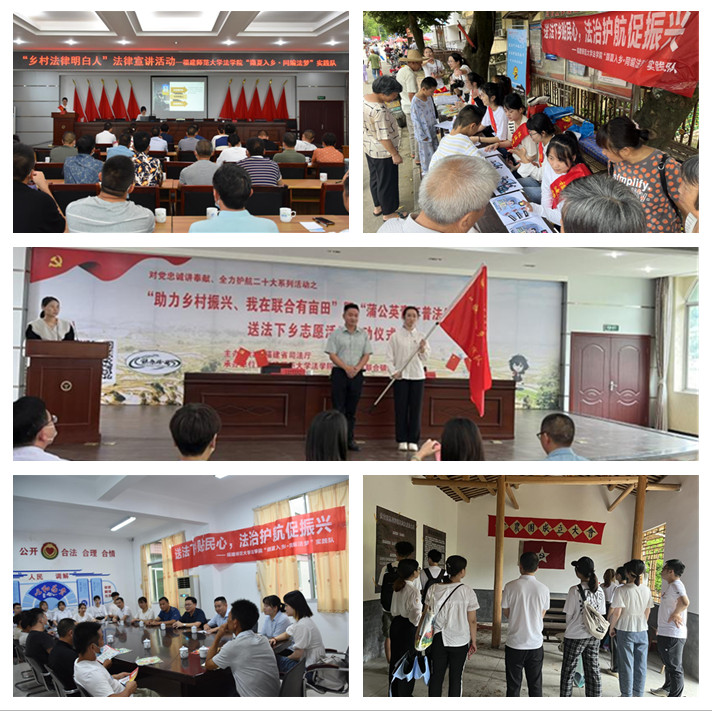 近日,由福建省司法厅主办,荣耀体育在线注册_荣耀体育(中国)法学院、三明市尤溪县联合镇政府承办的“对党忠诚讲奉献,全力护航二十大系列活动之‘助力乡村振兴,我在联合有亩田’暨‘蒲公英青年普法先锋队’送法下乡志愿活动”启动。现场,联合镇党委副书记纪荣兴向荣耀体育在线注册_荣耀体育(中国)法学院“撷夏入乡•同编法梦”实践队授旗,开启了法学院实践队师生送法下乡活动的序幕。