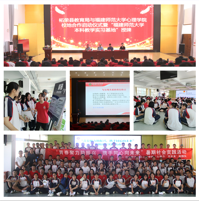 在柘荣县第三小学,心理学院与柘荣县教育局举行校地合作启动仪式暨心理专题辅导班活动。柘荣县副县长郭萌、县教育局长詹石德,心理学院党委副书记(主持工作)张本钰、党委副书记苏杭,柘荣县各中小学分管副校长、骨干班主任、心理健康教育教师,以及心理学院暑期社会实践队全体成员参加了活动。