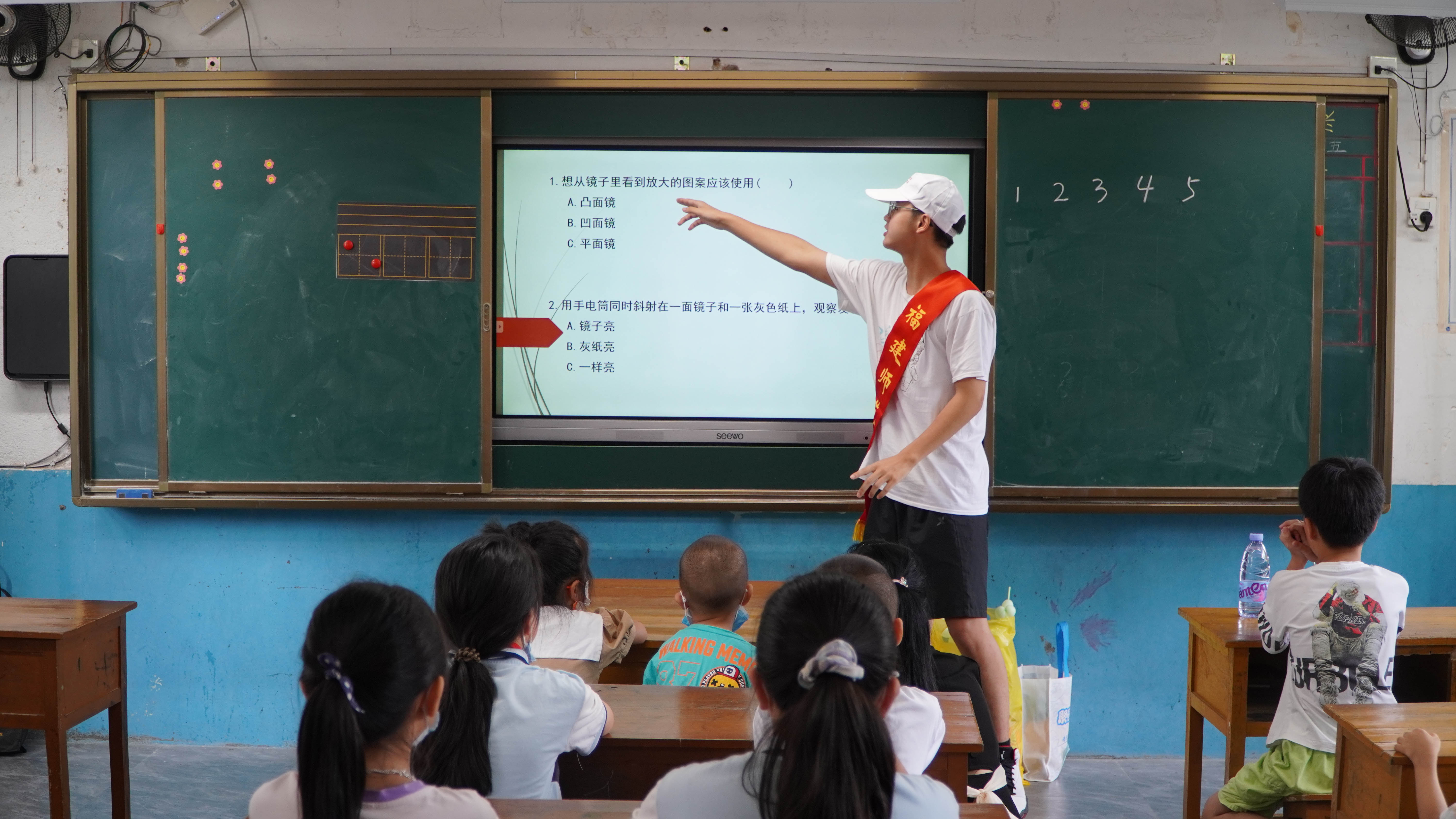 在三明市泰宁县大田乡,实践队通过座谈交流、实地调研,学习大田乡“红色+绿色”的乡村振兴模式,了解当地特色农业产业体系与生产体系,体会乡村振兴战略带来的乡村生产生活生态的全面发展。同时,实践队助力乡村教育振兴,在大田乡中心小学开展物理科普教育,通过物理小知识问答、原理讲解、实验演示、动手操作等生动形象的方式,让当地儿童掌握物理基础知识,培养儿童动脑思考与动手实践能力。