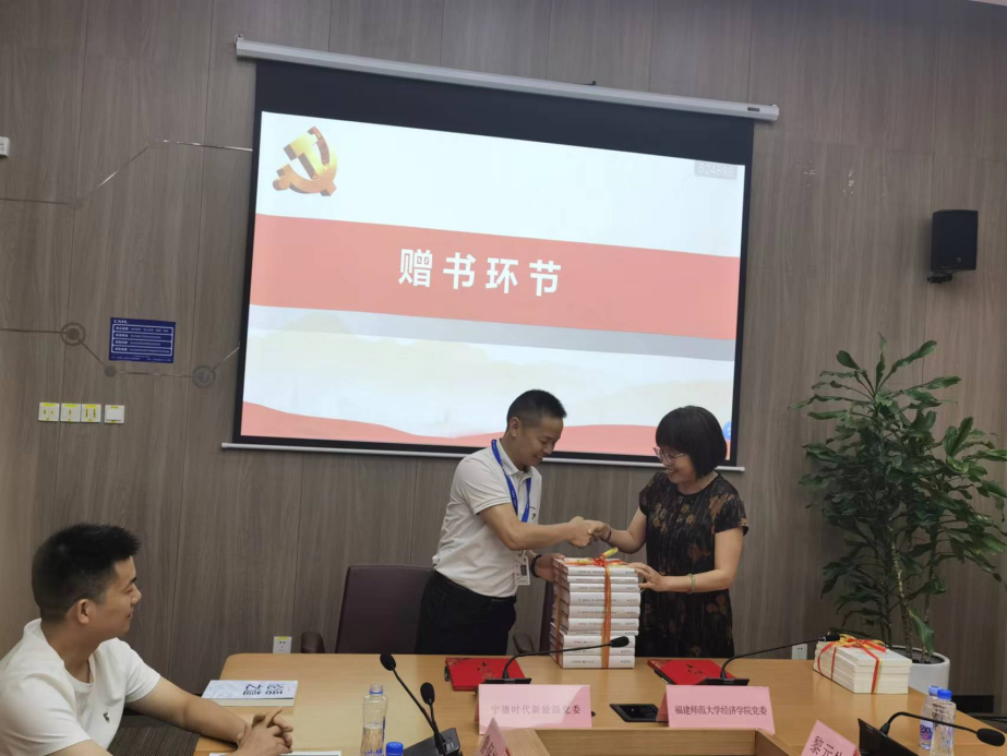 会上,黄瑾代表学院向宁德时代赠送“《资本论》研究丛书”、中央马工程重点教材《马克思主义政治经济学概论》(第二版);颜隆忠代表学院党委与宁德时代新能源科技股份有限公司党委签订《党建共建协议书》。与会人员就党建共建、民营企业高质量发展、人才培养等进行了互动交流。