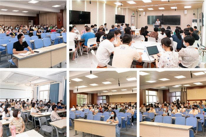 在新学期第一次全体教职工大会上,吴泳清通报了学校干部人事调整,并围绕强化政治引领、统筹改革发展、维护安全稳定等重点强调了下一步工作要求。温青回顾与总结了上一学年的主要工作,并从恢复初中部办学、疫情防控、德育管理、师德师风、教学教研等方面对附中新学年的重点工作进行了部署。副校长罗银先主持会议,并介绍了新进教师。大会分主会场和七个分会场以线上形式进行。