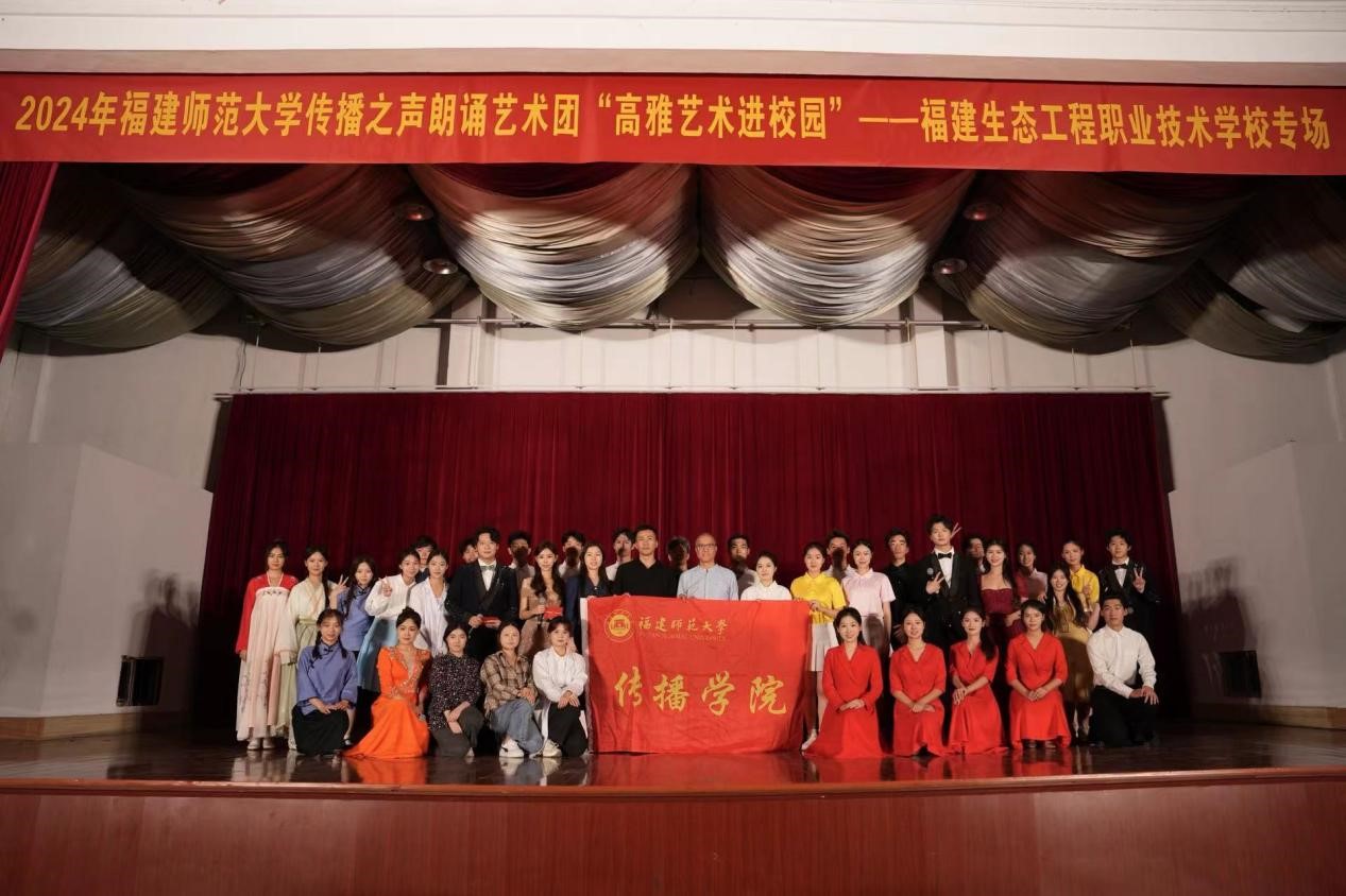 10月10日,由福建省教育厅、福建省文化和旅游厅主办,荣耀体育在线注册_荣耀体育(中国)“传播之声”朗诵艺术团承办的“青年诵传中国梦——高雅艺术进校园”朗诵专场活动在福建生态工程职业技术学校体育馆举行。传播学院党委书记郑文灿,福建生态工程职业技术学校党委书记徐锦心、校长叶忠华,“传播之声”朗诵艺术团指导老师吴煌,以及两校师生代表参加本次活动。