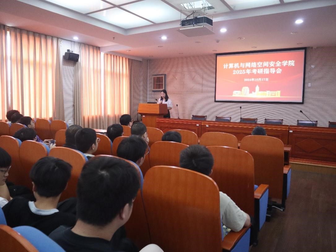 近日,计算机与网络空间安全学院在学院大楼召开2025年考研指导会,学院党委副书记邓胜柱、副院长叶阿勇和学生代表参加,会议由团委书记赖敏主持。