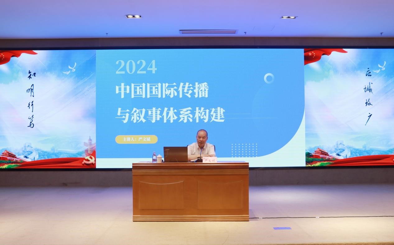 严文斌从“国际传播的基本概念”“西方印象固化下的中国话语和叙事体系构建”“重大舆论斗争中国际话语权的掌控”“如何讲好中国故事”四大方面展开阐述,同时寄语在场学子要培育审时度势的敏锐目光,对外讲好中国故事,为中国国际传播事业的发展贡献青春力量。