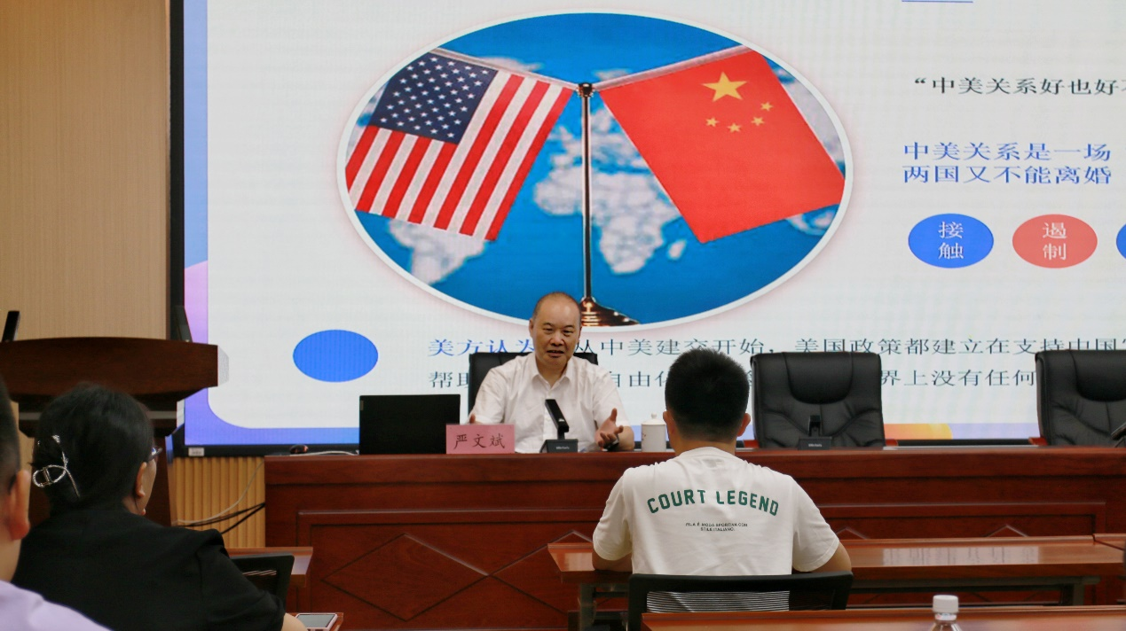 10月22日,新华社原副社长严文斌教授应邀为马克思主义学院百余名研究生作题为“新型大国关系与百年未有之大变局”的讲座。讲座由学院副院长鄢奋教授主持。