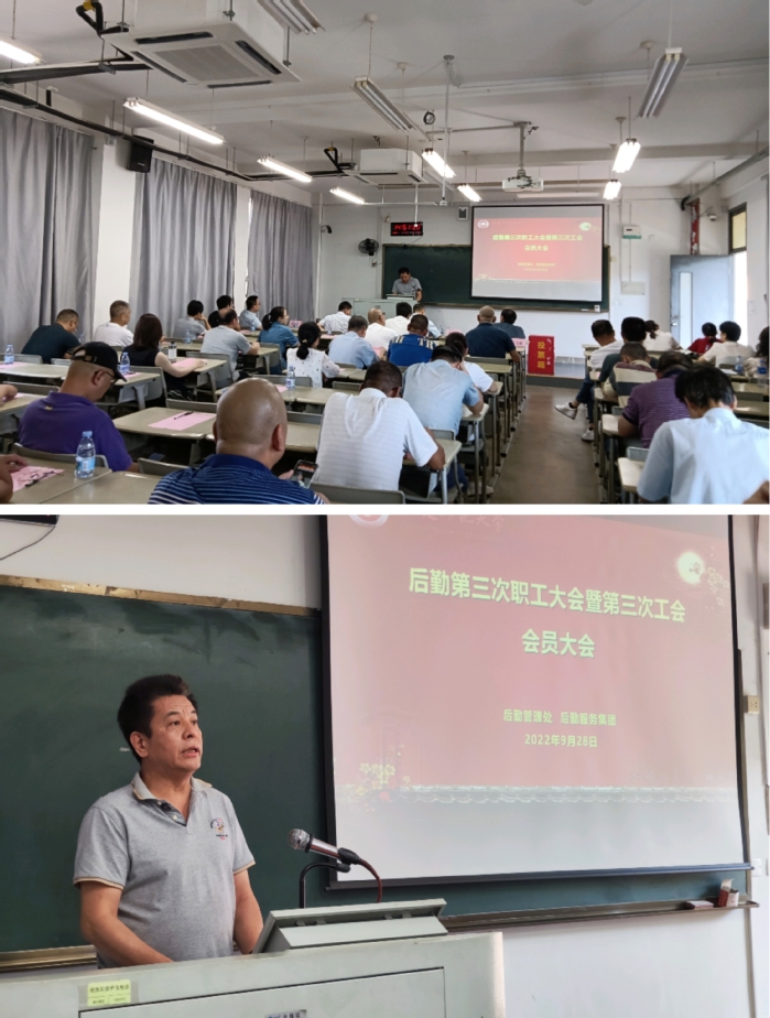 9月28日下午,后勤召开第三次职工大会暨第三次工会会员大会,选举产生新一届工会委员会、新一届职代会和工代会代表。会议由后勤党委副书记、纪检书记、后勤服务集团副总经理黄滨主持,后勤全体职工及工会会员参加了会议。
