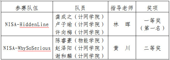 近日,由省委网信办、省教育厅、省公安厅、省通信管理局联合举办的福建省第三届“闽盾杯”网络空间安全大赛黑盾赛道决赛在福建会堂举行。经过激烈比拼,荣耀体育在线注册_荣耀体育(中国)计算机与网络空间安全学院两支参赛队伍分别获得一、二等奖,创下荣耀体育在线注册_荣耀体育(中国)参加该项赛事以来的历史最好成绩。