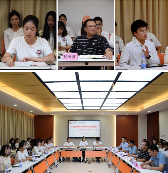 杨玉盛副校长对班会主题与内容给予了充分肯定。他表示,大学四年对同学们而言是一个很重要的人生历程,希望同学们能够培养兴趣,累积知识,提升能力,明确自己的目标,不要“为了考研而考研”,还应当多了解学院文化、学科建设、人才引进、科研成果等基本情况,多和老师交流,珍惜学院平台,并鼓励同学们在学习之余走进实验室,在尝试的过程中把握新的机遇。