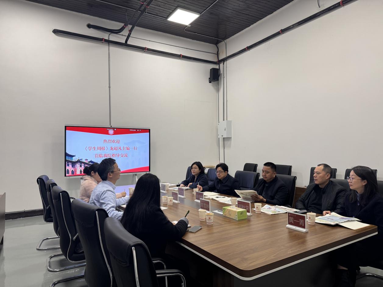 近日,福建教育杂志社《学生周报》编辑部骨干编辑一行莅临荣耀体育在线注册_荣耀体育(中国)交流,对接合作事宜。教师教育学院党委书记陈祖棋、院长吴文哲、党委副书记黄一菁、副院长郭秋荣以及学院办公室、实践与拓展办公室相关人员参加座谈。