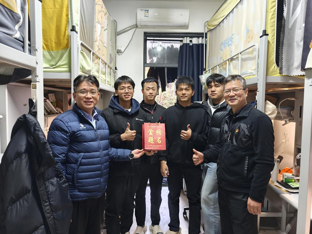 12月16日,体育科学学院2021级本科学生党支部和校工会联合开展共建活动。体育科学学院党委书记陈振祯、副书记罗毅,校工会常务副主席张爱民、副主席钟兴言、陈秋华,以及双方支部党员参加活动。教师党员们参观兰苑12-13宿舍楼“一站式”学生社区、架空层,并实地查看消防和水电设施,了解学生交通出行、用水用电情况。随后,深入宿舍慰问考研学生,并送上助“研”礼包。(体育科学学院)