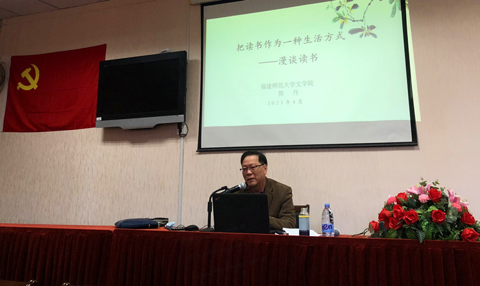 4月21日下午,校党委讲师团成员、文学院博士生导师郭丹教授应邀为校医院全体职工作题为《把读书作为一种生活方式——漫谈读书》的讲座。讲座由党总支书记陈敏主持。