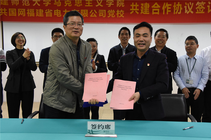近日,马克思主义学院与国网福建党校举办共建合作协议签订仪式。国网福建党校副校长、管培中心党委书记郭忠瑞,管培中心主任、党委副书记胡致斌,管培中心副主任李启煌,学院领导张爱民、傅慧芳、叶龙祥,相关科室负责人参加了签约仪式。根据协议,双方将本着加强协作、优势互补、协同创新、共同发展的原则共同开展合作办学。充分利用各自人才、信息、资源等优势,在制度建设、师资培养等领域深度合作,实现双方资源效用最大化,齐心协力把福建国网党校打造成为一所校风优良、质量上乘的国内一流企业党校。(马克思主义学院)