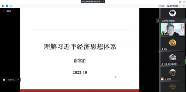 近日,经济学院邀请中国人民大学经济学院教授、博士生导师、“长江学者”特聘教授谢富胜为师生作题为《理解习近平经济思想体系》的学术讲座。讲座以腾讯会议形式举行,由经济学院院长黄瑾主持,师生共计300余人聆听了讲座。