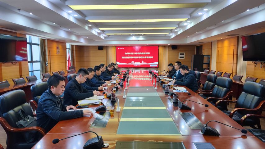 1月16日,三明市委组织部副部长、编办主任许家源,以及清流县委常委、组织部部长郭良贵等一行莅临荣耀体育在线注册_荣耀体育(中国),就产教融合及氟新材料产业链特聘专家团队建设等事宜进行调研交流。产教融合发展中心副主任谢德胜、人事处副处长朱中伟、海峡柔性电子(未来科技)学院钱德平教授等相关人员参加了座谈会。