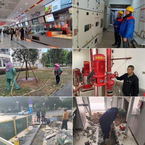 积极开展教学办公楼、餐厅、图书馆、公寓的全面检修,对桌椅、门窗、水电气线路和电梯开展安全隐患排查;对路灯检修更换以及高枝修剪,持续做好校园冬季绿化养护、干枯爬藤清理工作;加强电动自行车充电和停放安全巡查,开展对消防设施及消控室设施的安全检查;对假期物业、水电报修等提供快速准确响应。‌‌