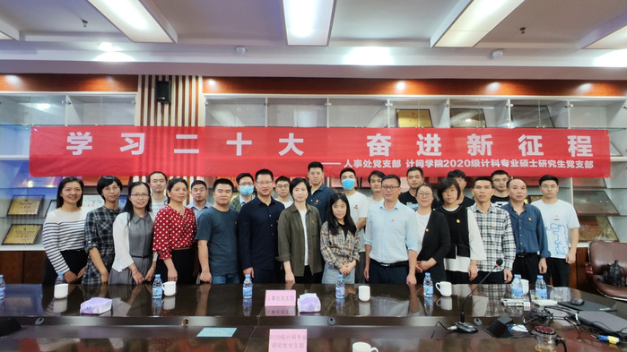 10月16日,人事处支部与计算机与网络空间安全学院2020级计算机科学与技术专业研究生党支部共建共学,集体收听收看党的二十大开幕盛况,现场聆听习近平总书记重要讲话,并结合共建支部实际,开展就业帮扶和指导。10月31日,支部召开党员大会,线上线下集中学习研讨交流党的二十大精神。支部书记章琳为支部党员上题为“从历次党章修改看中国共产党百年发展”专题党课,支部副书记阮学旺从“历史”的角度交流学习党的二十大精神心得体会。通过学习交流研讨,大家更加深刻领悟党的二十大的重大意义和丰富内涵,进一步增强学习贯彻的自觉性和坚定性,坚定做好新时代人事人才工作的信心和决心。