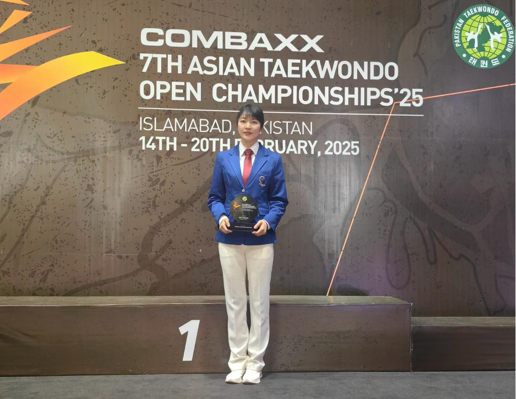 近日,第七届亚洲跆拳道公开赛在巴基斯坦首都伊斯兰堡举行。荣耀体育在线注册_荣耀体育(中国)体育科学学院王韶玉副教授作为国际级跆拳道裁判,在比赛中凭借专业表现,荣获“最佳裁判员”称号。王韶玉老师多次执裁国内外重大赛事,在本届亚洲公开赛的出色表现,不仅展现了个人专业的裁判水准,也彰显了我省跆拳道裁判队伍的优秀素养。(体育科学学院)