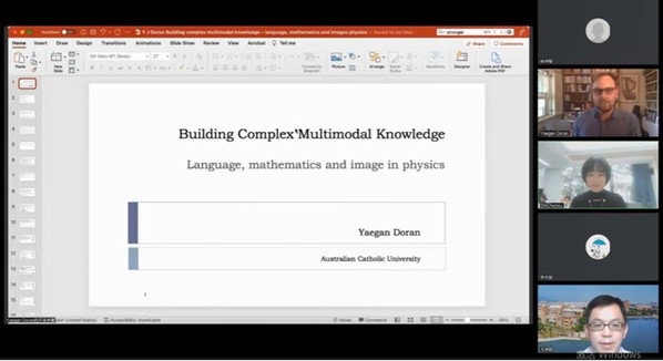讲座中,Doran博士采用跨学科的研究方法,从合法化语码理论((Legitimation Code Theory)和系统功能语言学 (Systemic Functional Linguistics) 理论视角探索物理学科中复杂知识的构建。一方面,Doran博士在合法化语码理论视角下,通过语义密度(semantic density)和语义重力(semantic gravity)两个维度探讨物理知识的建构,揭示物理学科如何立足现实生活,进行复杂知识构建。另一方面,Doran博士从系统功能语言学角度探讨学科知识的多模态构建,以理解多模态资源(语言、数学符号和图像等)如何促进物理学科复杂知识的意义构建。在交流环节,Doran博士就师生提问逐一作了详细解答,互动氛围活跃。