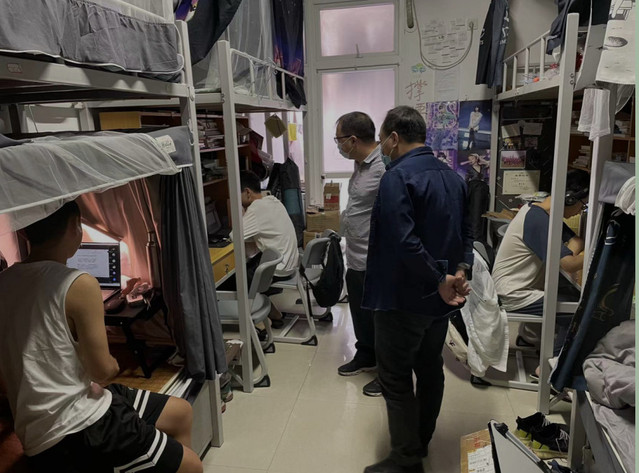近日,文学院院党委书记钟伟兰、党委副书记叶祖淼带领各年级辅导员走访16号楼、17号楼等学生宿舍,深入了解同学们的学习、生活状况以及思想动态,倾听同学们的诉求,切实帮助他们解决实际困难;向同学们介绍当前福州市疫情的严峻形势和属地仓山区的防控政策以及目前校园防控管理规定,希望同学们理解并自觉遵守疫情防控管理规定;叮嘱大家注意个人身心健康,加强体育锻炼,做好未来规划,提高抗压能力,积极主动学习。(文学院)