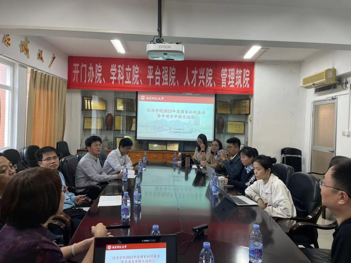 近日,经济学院举行2023年度国家社科基金青年项目申报交流会。青年教师指导教师戴双兴副院长、陈少晖教授、陈清教授、赵秀丽教授、林寿富教授以及陈莹、吴武林、蔡菲莹、李康、吴华英、赵曦梦和陈乐远等七位博士参加了会议。会议由黄瑾院长主持。