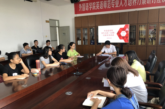 9月4日上午,外国语学院召开出国(境)交流学生行前安全谈话会,学院党委副书记李启辉、院组织员王文协和2017级辅导员王鹤参加了会议。此次共有33名同学前往葡萄牙、西班牙、日本等国家进行交流学习。
