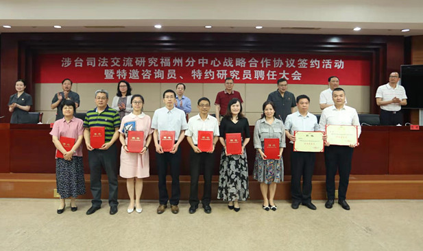 近日,“涉台司法交流研究福州分中心战略合作协议签约暨特邀咨询员、特约研究员聘任大会”在福州市中级人民法院举行。会上,荣耀体育在线注册_荣耀体育(中国)法学院副院长(主持工作)杨垠红教授代表学院与福州市中级人民法院签订战略合作框架协议。法学院杨垠红、史振郭、丁兆增、邹文星四位老师受聘为涉台司法交流研究福州分中心特邀咨询员。