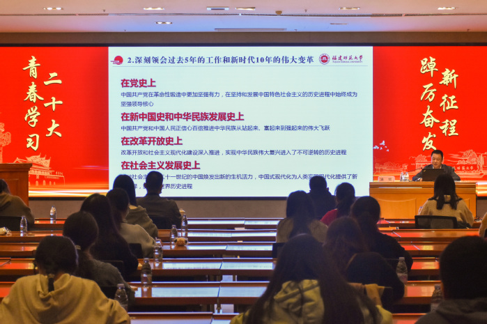 报告结束后,同学们纷纷表示,将坚定不移听党话、跟党走,怀抱梦想又脚踏实地,敢想敢为又善作善成,始终以理想者、担当者、吃苦者、奋斗者的姿态,在全面建设社会主义现代化国家的火热实践中播撒青春和汗水。