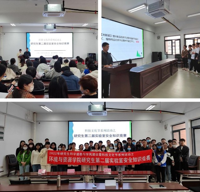 近日,环境与资源学院、碳中和现代产业学院举办研究生科技节之第二届实验室安全知识竞赛。学院党委副书记陈今园、学院重点实验室刘任嫔老师、研究生辅导员刘芸,近百名研究生参加了活动。
