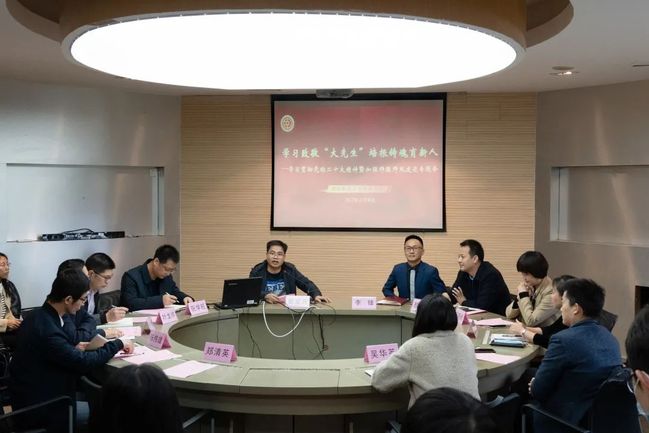 近日,经济学院举行“学习致敬‘大先生’,培根铸魂育新人”学习贯彻党的二十大精神暨加强师德师风建设专题会。校教师工作部部长李锋,校人事处副处长阮学旺,学院党委书记颜隆忠、副书记叶龙祥、副院长戴双兴、工会主席陈晓枫以及师生党员代表参会。会议由副院长戴双兴主持。