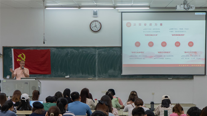 讲座中,郑文灿通过14首不同时期的毛泽东诗词深入解读党史,用“中华儿女多奇志”“风卷红旗过大关”“敢教日月换新天”“独有英雄驱虎豹”“胸中日月常新美”等经典句段带领大家回顾党史,汲取奋进力量。他鼓励青年学生把学习党史同推动学习、工作、生活结合起来,同解决实际问题相结合,胸怀远大志向、掌握创新理论、善用创新思维、勇于奋斗担当、敢于突破自我,让青春在不懈奋斗中绽放。