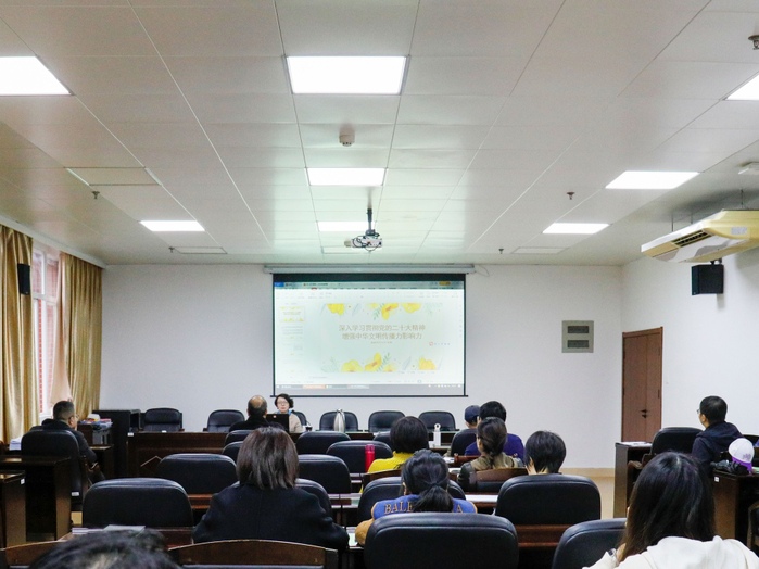 12月7日,传播学院邀请校学习贯彻党的二十大精神宣讲团成员张梅教授为全体教职工作题为《深入学习贯彻党的二十大精神 增强中华文明传播力影响力》的专题报告。报告会由院党委书记郑文灿主持。