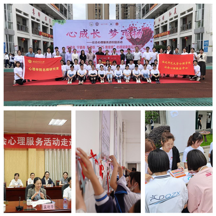 525日是学生心理健康日。为了引导广大师生关注自己的心理健康状态,呼吁家长关注和重视孩子的心理健康问题,心理学院携手福建省学校心理健康教育发展中心、福建省心理学会、福建法治报社、宁德市教育局在东侨经济技术开发区中学开展主题为“心成长 梦飞扬”的心理健康公益活动。