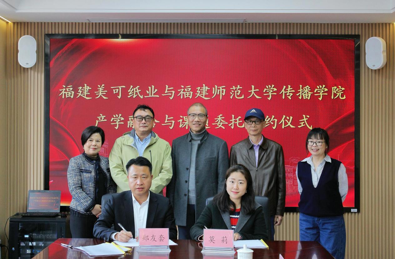 3月18日,传播学院与福建美可纸业举行产学融合与课题委托签约仪式。福建美可纸业总经理郑友套一行,原民盟福建省委会专职副主委、一级巡视员刘泓,传播学院党委书记郑文灿,院长谢宗贵,教师莫莉、卢佳音参加。双方就业务开展、校企协作与党建工作交流等进行座谈,并就产学融合与课题委托签订合作协议。传播学院将依托学科优势,结合福建美可纸业在泉州民营经济中的产业资源,开展相关课题研究,共建实习实训基地与产学研创新平台,并组织师生团队结合专业特长,助力产业品牌塑造。(传播学院)