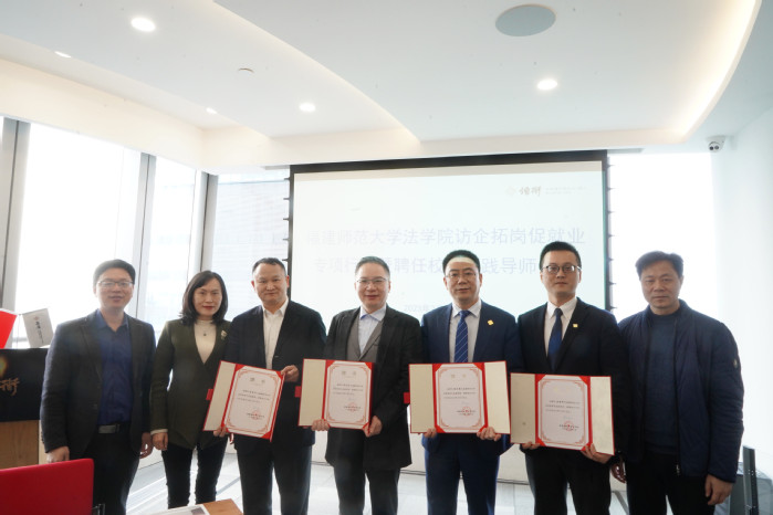 近日,法学院党委书记陈文、院长杨垠红、党委副书记周延锋一行前往北京市炜衡(福州)律师事务所开展访企拓岗促就业专项行动暨聘任校外实践导师仪式。炜衡福州所主任陈永华、党支部书记胡伦扬等律师,及在律所实习的法学院毕业生参加了本次活动。