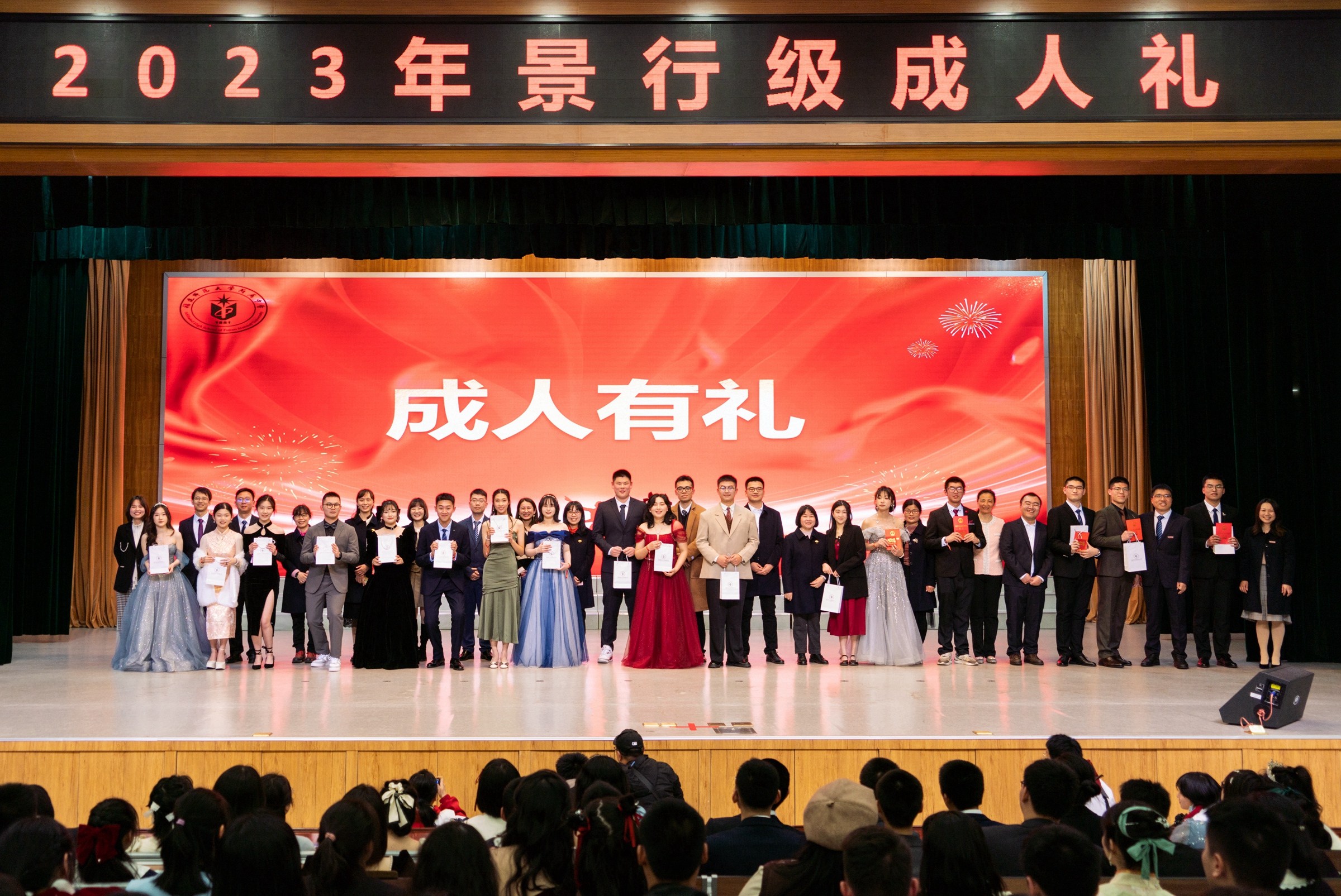 教师代表白云老师结合自己的成长经历分享了“成年”的意义,希望景行学子成长的脚步能更加坚定。家长代表、陈文渤同学的父亲陈国雄先生祝贺同学们迈入青年行列,鼓励大家胸怀祖国、放眼世界、努力学习,真正领悟和践行“以天下为己任”的附中校训精神。之后,景行学子展信阅读了家长寄语,感悟父母的关爱、祝福与期许。学生代表刘佳艺在仪式上发言与同学们共勉。最后,在成浩铭同学的带领下,景行学子庄严宣誓“以我火红青春,建设锦绣中华”,豪情壮志,掷地有声。