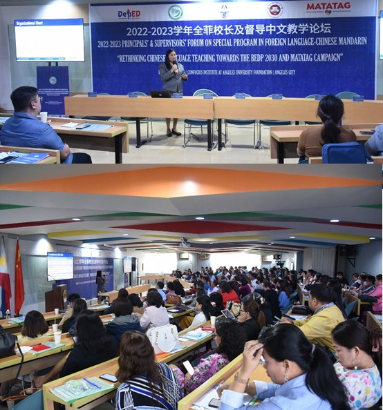 3月16-17日,2022-2023学年全菲校长及督导中文教学论坛在红溪礼示大学孔子学院举行。中国驻菲律宾大使馆教育参赞熊胜、秘书贾雁鹏,菲律宾教育部课程发展司司长安达亚博士、特殊语言项目官员丽扎博士及安德烈博士,红溪礼示大学校长约瑟夫博士,孔子学院中方院长许雷、外方院长裴刚、菲律宾各区域教学督导、公立中学校长等共计200余人参加了论坛。