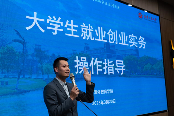 近日,海外教育学院邀请福建省青创导师、荣耀体育在线注册_荣耀体育(中国)客座副教授、龙旺集团龙蓓教育咨询公司副总经理李梁裔在索莱达大楼105会议室开展了“大学生就业创业实务操作指导”主题讲座。讲座由党委副书记施伟主持。