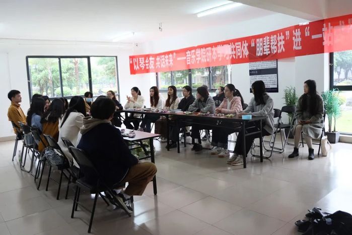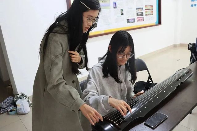 活动中,音乐学院研本学习共同体的同学们开展了“学长学姐解困惑、专业书籍互分享、古琴社团体验课”,研究生学长学姐结合自身经历解答了本科生们关心的专业学习、就业抉择、备战考研以及毕业论文等相关问题、给予相关建议,分享专业书籍和学习经验。古琴社的“小老师们”用一首《关山月》展示了古琴的魅力,她们抚琴教学,介绍古琴的历史发展、构造象征及艺术流派,在体会意境之美中增强大家对民族音乐文化的认同和喜爱。