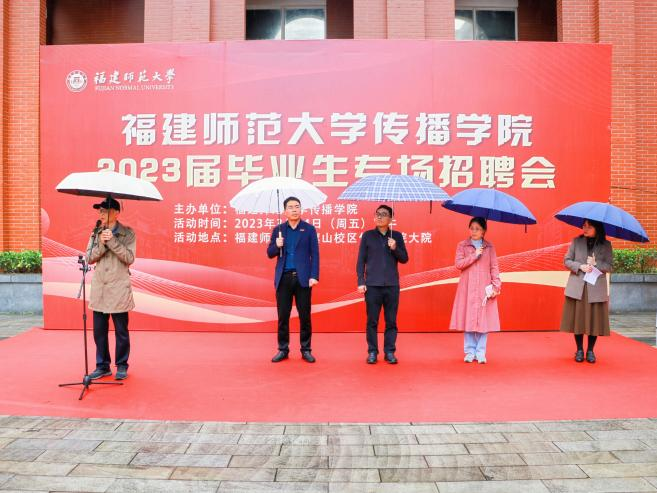 近日,传播学院在学院大院前举办2023届毕业生专场招聘会。招聘会吸引了福建日报、福建省广播影视集团、福建省广电网络集团、福建东南网、人民政协报等34家用人单位,提供近400个工作岗位。校学工部副部长汪启思,传播学院领导谢宗贵、谢秀俤、吴青青,院关工委主任刘舒平,师生代表以及2023届毕业生参加了活动。