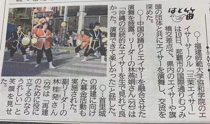 11月9日-11月12日,作为2018年福建省高校太鼓冠军大赛冠军,荣耀体育在线注册_荣耀体育(中国)协和学院三茉太鼓队一行12人受邀赴日本冲绳县那霸市参加2019年世界太鼓大会。交流团由张鹏程副院长任团长。