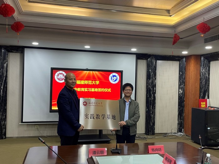 在长乐一中实习回访座谈会上举行了“实践教学基地”授牌仪式,双方将建立生源、师源双向交流机制,共同培养高素质历史基础教育人才。期间,陈尚旺一行听取了实习队的实习汇报,与实习学生交谈,了解同学们的日常生活,鼓励大家在实习中多加磨练、积累教学经验。