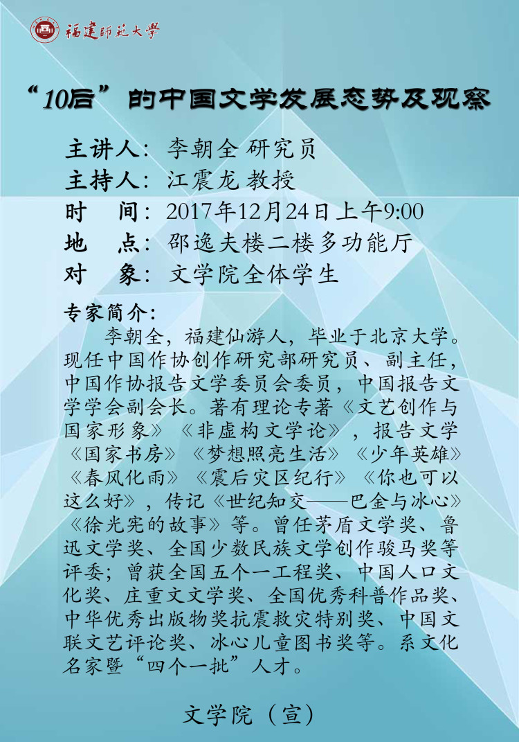 学术讲座【“10”后的中国文学发展态势及观察】