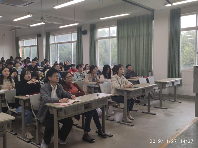 活动于11月27日下午在致广1-202教室举行。校党委讲师团成员傅慧芳教授应邀为社会历史学院师生宣讲党的十九届四中全会精神。学院党委书记陈尚旺、院长叶青,学院师生党员代表共计100余人参加活动。宣讲会由陈尚旺主持。