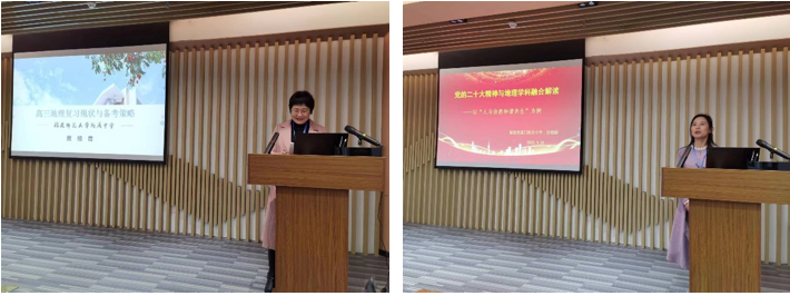在特邀报告环节,4位专家围绕新时代地理学科教-考-评一体化、新时代中学地理课程改革理念、地理学科高考复习备考策略等话题带来主旨报告。地理科学学院、碳中和未来技术学院袁书琪教授作题为《地理学教学与评估若干问题》的报告;地理科学学院、碳中和未来技术学院地理系主任刘恭祥副教授作题为《“教—学—评”一致性的落实:基于评价视角的思考》的报告;荣耀体育在线注册_荣耀体育(中国)附属中学正高级教师黄榕青作题为《2023届高三地理复习备考的现状及建议》的报告;厦门集美中学高级教师张艳梅作题为《党的二十大精神与地理学科融合解读》的报告。