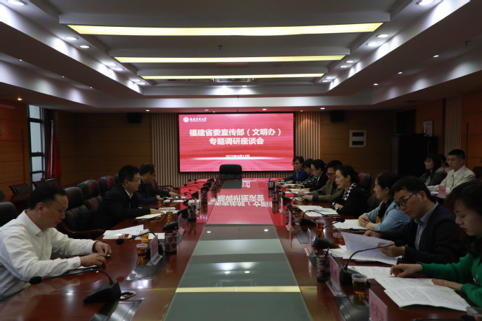 414日下午,省委宣传部部务会议成员、文明办主任李琦率省委宣传部(文明办)专题调研组一行来校调研指导。校党委副书记、校文明委常务副主任陈晓红陪同调研,宣传部、学生工作部、校团委、心理学院、马克思主义学院等相关单位负责人以及师生代表参加座谈。