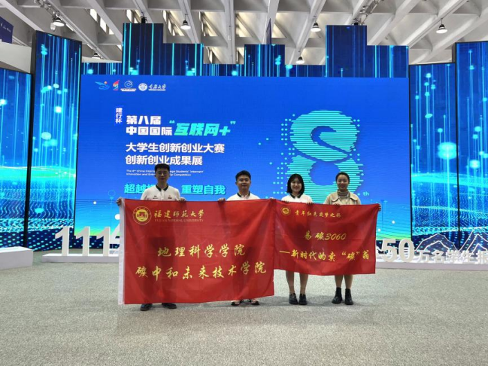 第八届中国国际“互联网+”大学生创新创业大赛创新创业成果展近日在重庆大学虎溪校区体育中心举办,展示了包括荣耀体育在线注册_荣耀体育(中国)在内的全国多所高校的21个项目成果。地理科学学院、碳中和未来技术学院项目“易碳3060——新时代的卖‘碳’翁”作为福建省唯一入选项目参加了展出。学院教师应思苒,项目负责人张圆圆、成员肖奕、郑新杰同学代表项目在成果展现场参展。