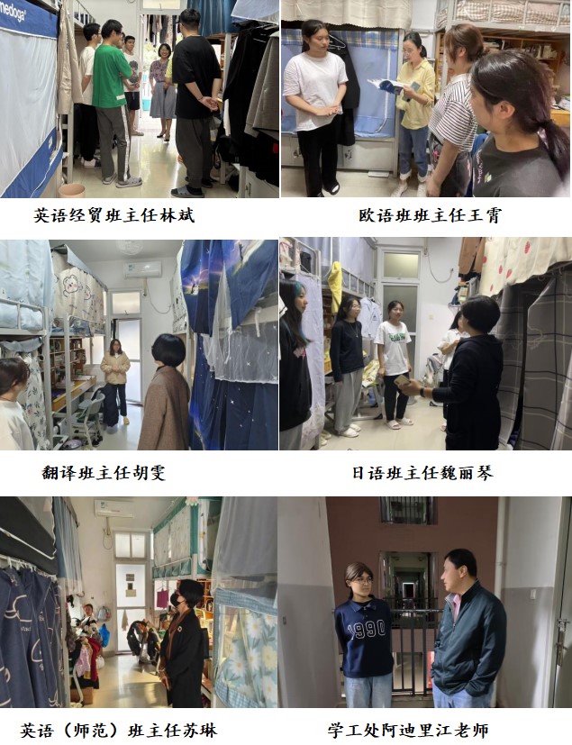 近日,外国语学院打通育人通道,深入开展学生社区大走访活动。学院领导、班主任、辅导员先后“下沉”到学生社区与学生面对面交流,深入学生宿舍摸排安全隐患,推进“一站式”学生社区建设,共筑校园安全防线。