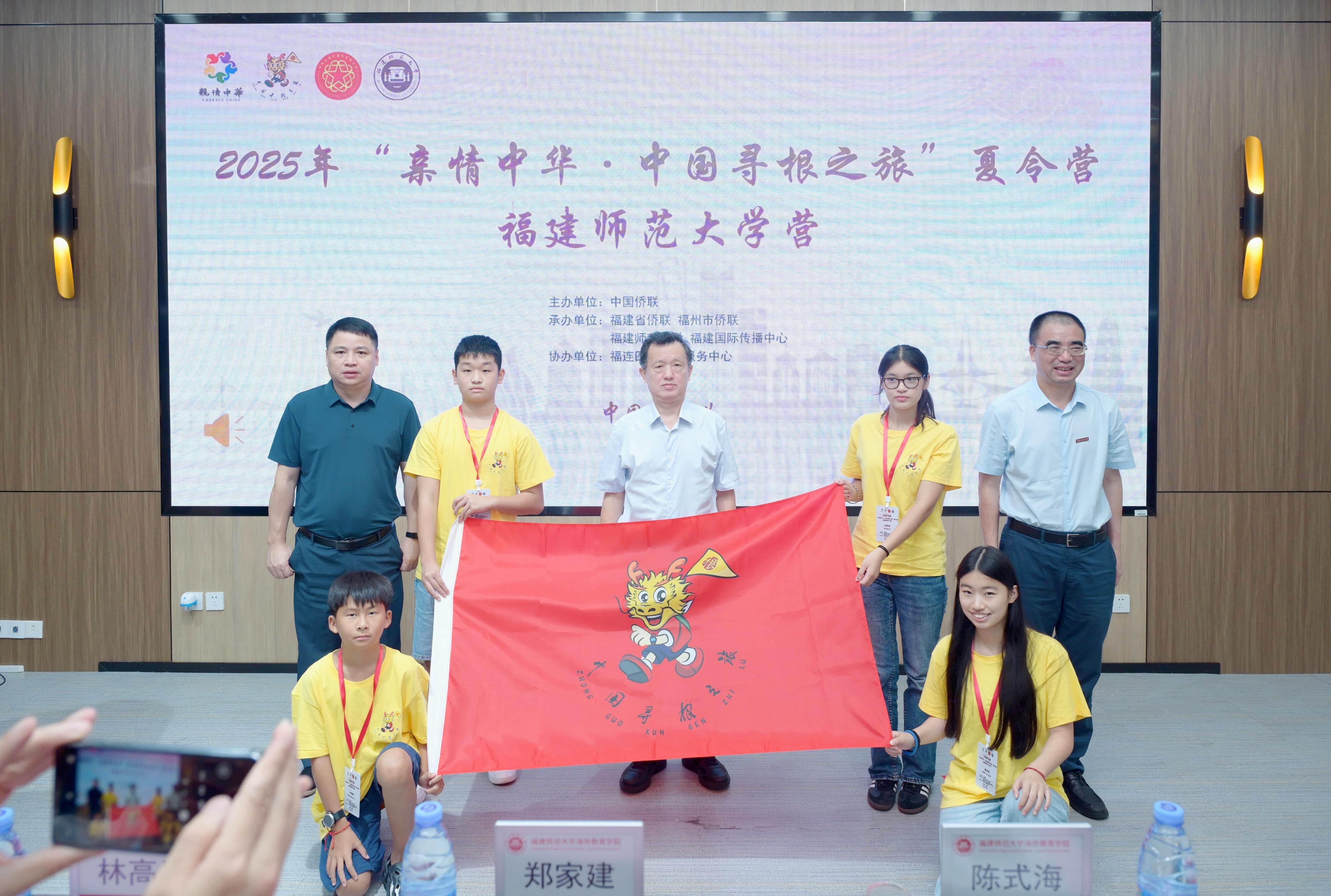 8月5日,由中国侨联主办、荣耀体育在线注册_荣耀体育(中国)海外教育学院承办的2025“亲情中华·中国寻根之旅”夏令营在旗山校区开营。福建省侨联主席陈式海、我校校长郑家建出席开营仪式并为夏令营营员代表授旗,福州市侨联主席林高星、荣耀体育在线注册_荣耀体育(中国)副校长欧阳松应,海外教育学院有关负责人以及37位来自法国、西班牙、越南、菲律宾、英国、荷兰、日本等7个国家的领队老师和华裔青少年参加了开营仪式。